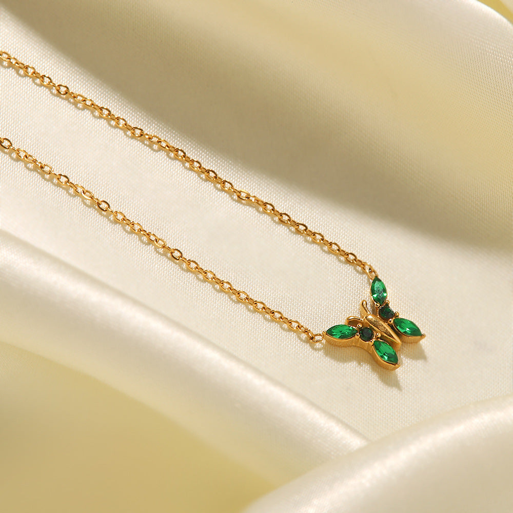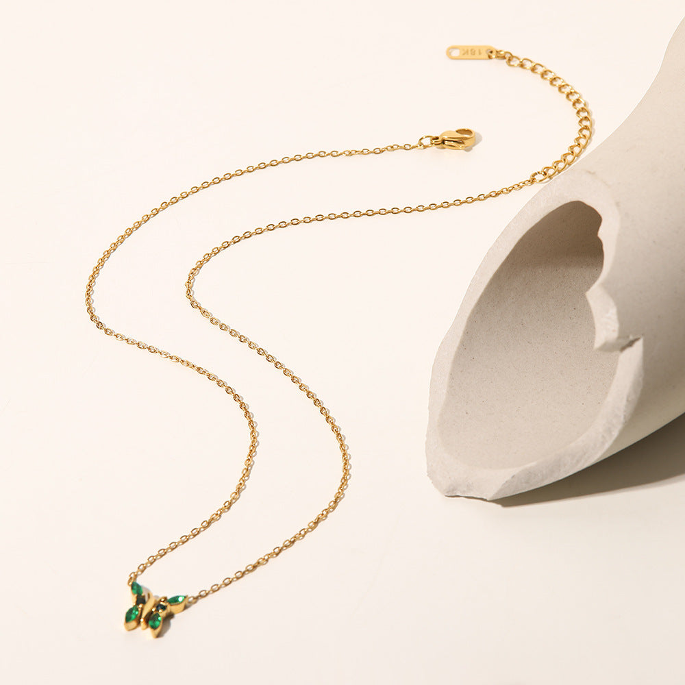 18K gold plated butterfly necklace with green/white zircon stylish temperament