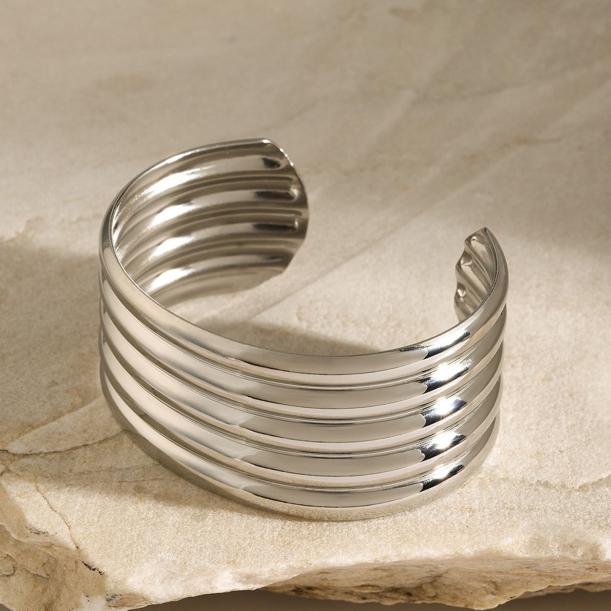 The overall design of the bracelet is simple and generous, suitable for wearers who pursue low-key luxury. The linear design makes the bracelet can be worn alone or stacked with other accessories to increase the fashion of the wearer.
