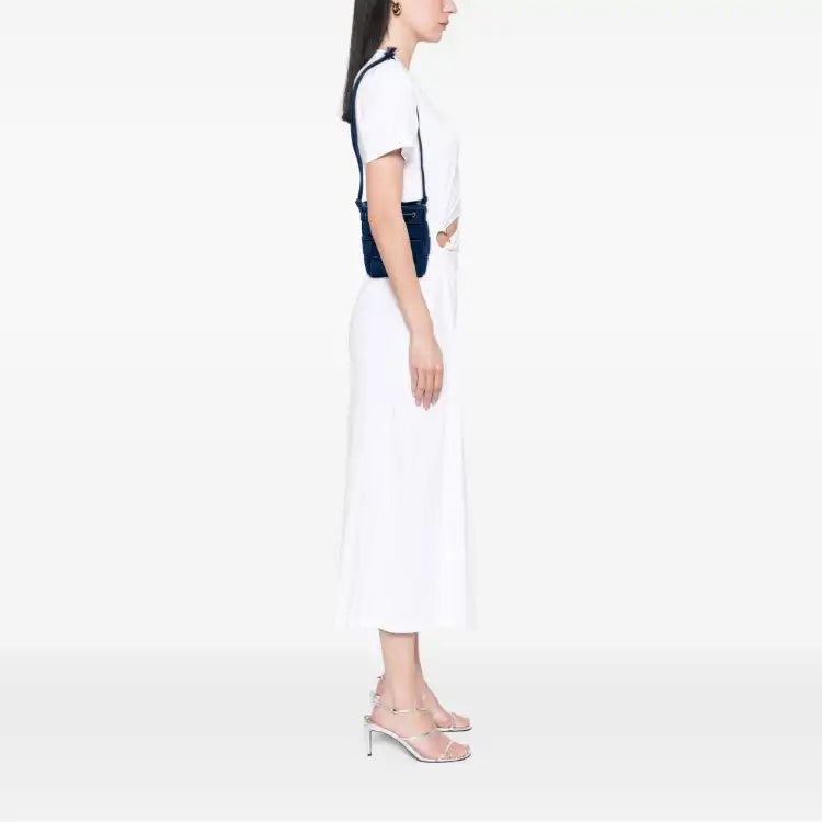 | Description | This bucket bag features a woven denim body, a denim shoulder strap, and an open top with a drawstring closure. | ||||||||||||
