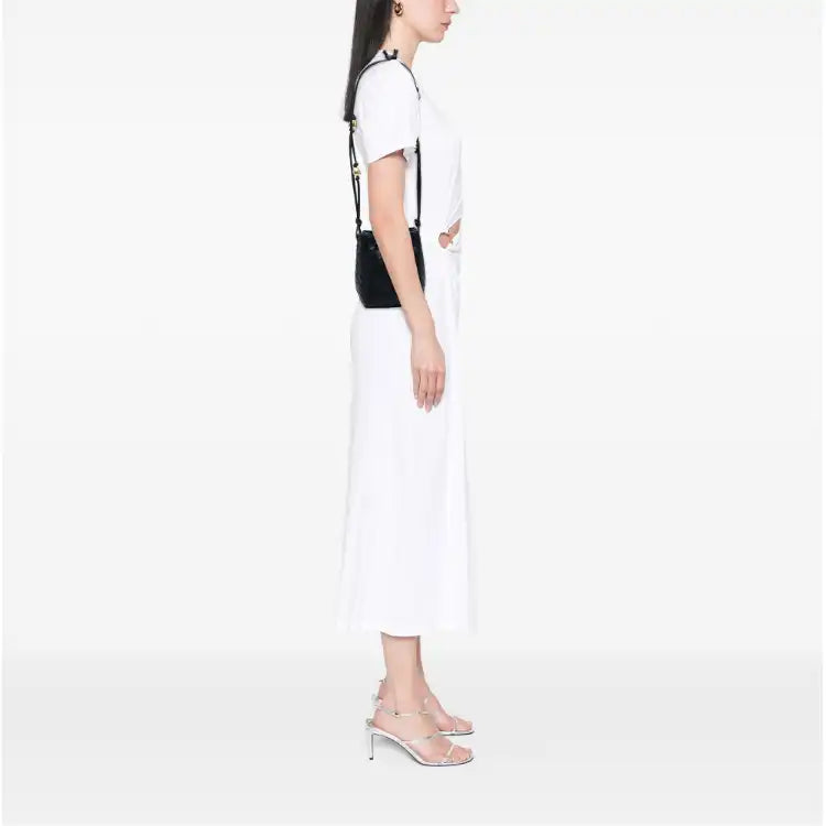 | Description | This bucket bag features a woven nappa leather body, a flat leather shoulder strap, and an open top with a drawstring closure. | ||||||||||||