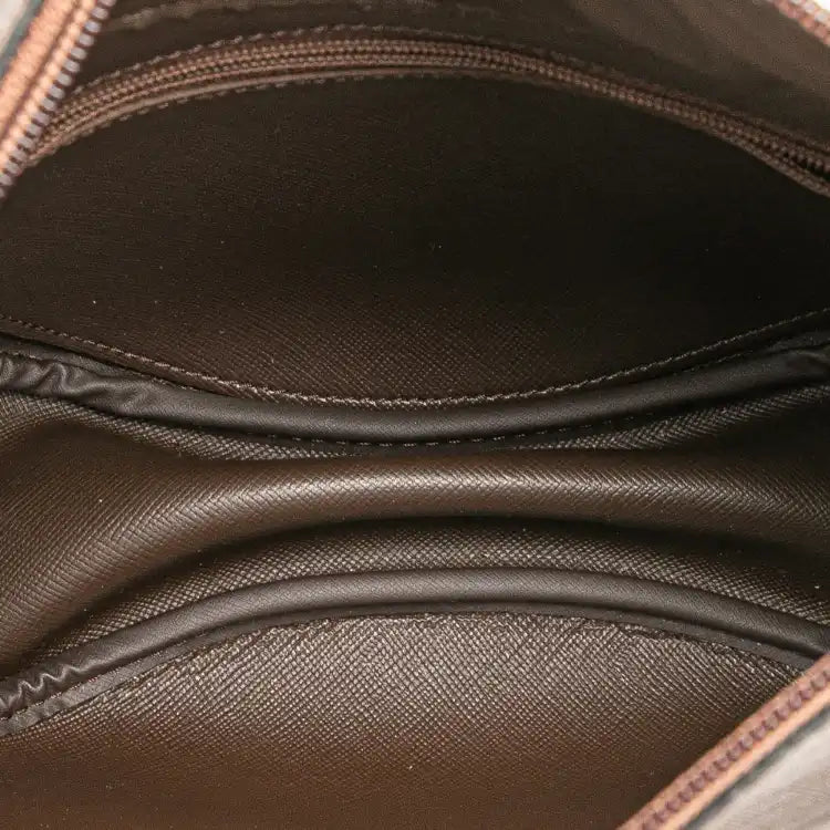 Description | This shoulder bag features a canvas body with leather trim, an adjustable flat leather strap, a top zip closure, and an interior zip pocket. | ||||||||||||