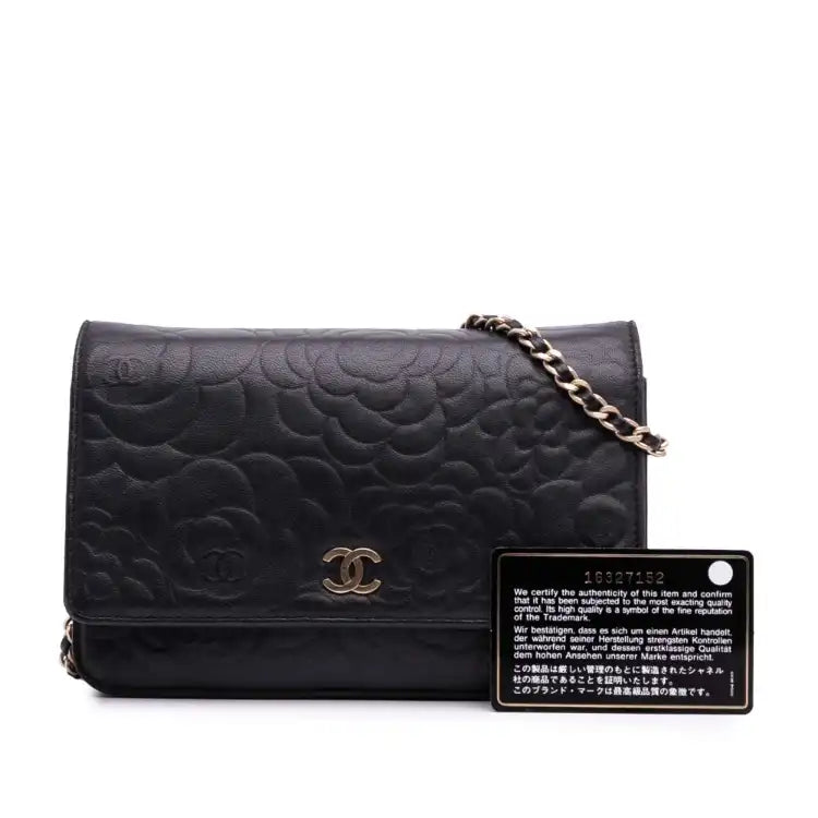 Chanel Camellia Embossed Lambskin Wallet On Chain
