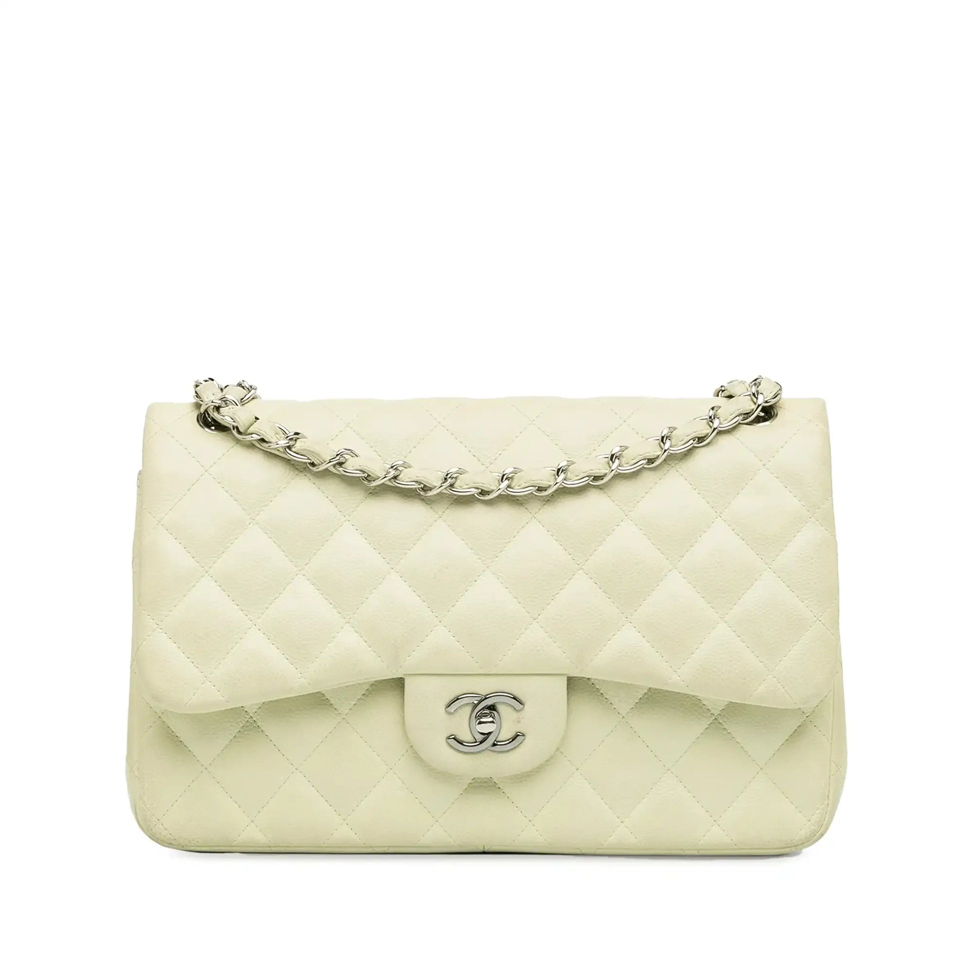 | Description | This shoulder bag features a quilted caviar leather body, leather woven chain straps, double top flaps with CC turn-lock closure, an exterior back slip pocket, and interior zip and slip pockets. | ||||||||||||