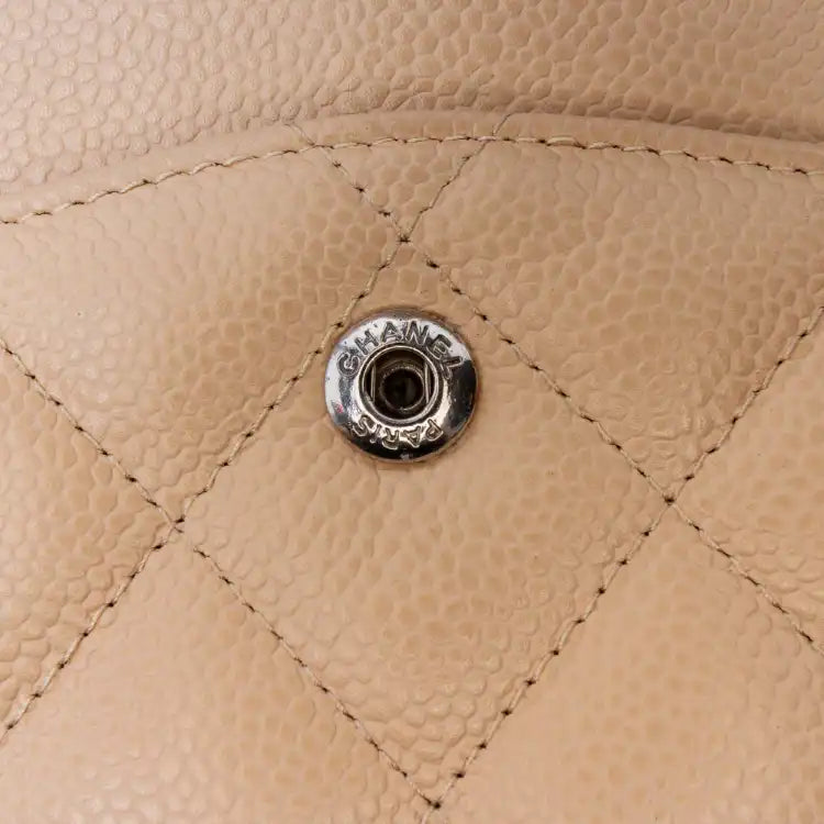 | Description | This shoulder bag features a quilted caviar leather body, leather woven chain straps, a double top flap with CC turn-lock closure, an exterior back slip pocket, and interior zip and slip pockets. | ||||||||||||