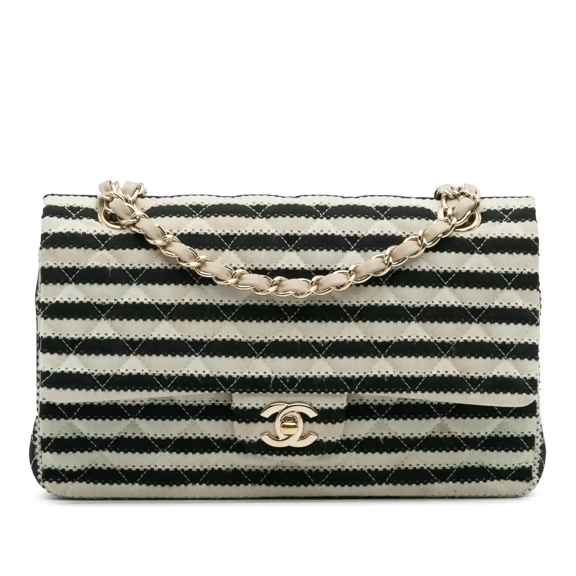 | Description | The Coco Sailor features a quilted cotton body, a back exterior slip pocket, leather woven chain straps, a front flap with a CC turnlock closure, double flaps, and interior slip pockets. | ||||||||||||