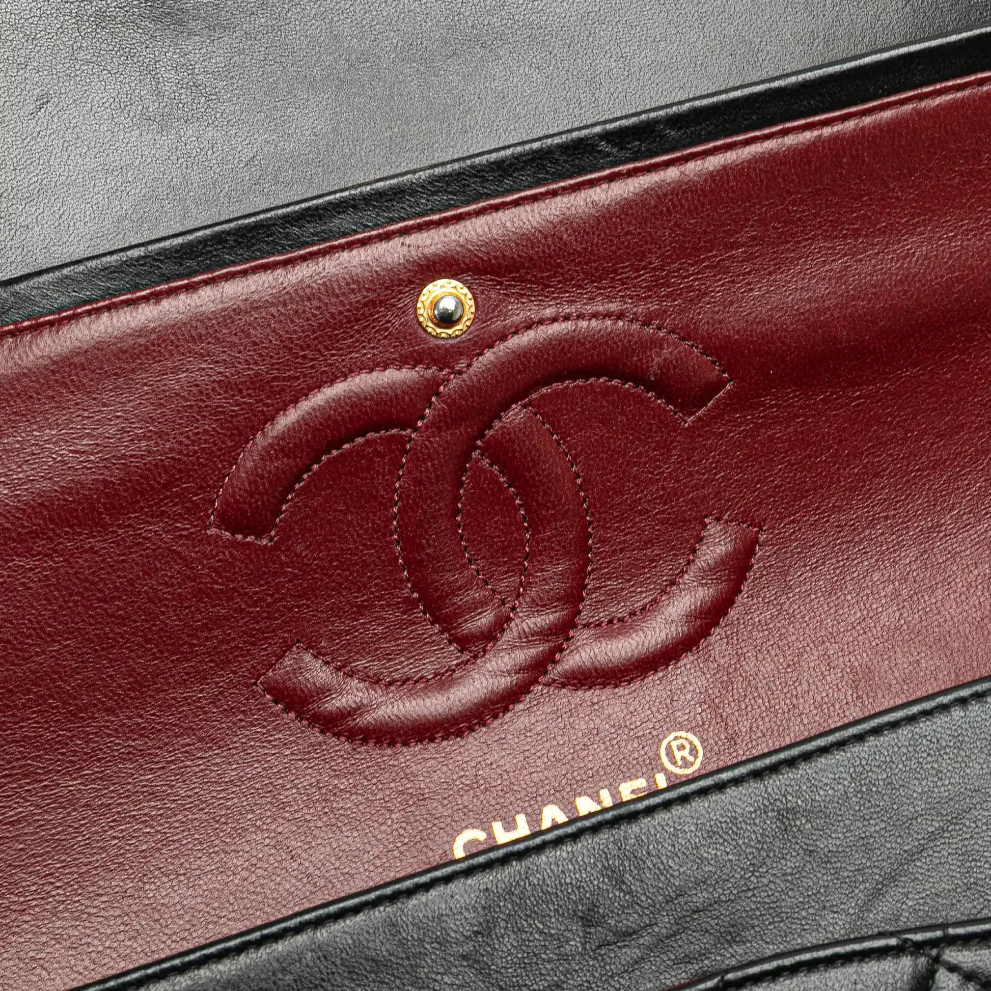 | Description | This shoulder bag features a quilted lambskin body, leather woven chain straps, double front flaps with interlocking Cs and a twist lock closure, an exterior back slip pocket, and interior zip and slip pockets. | ||||||||||||
