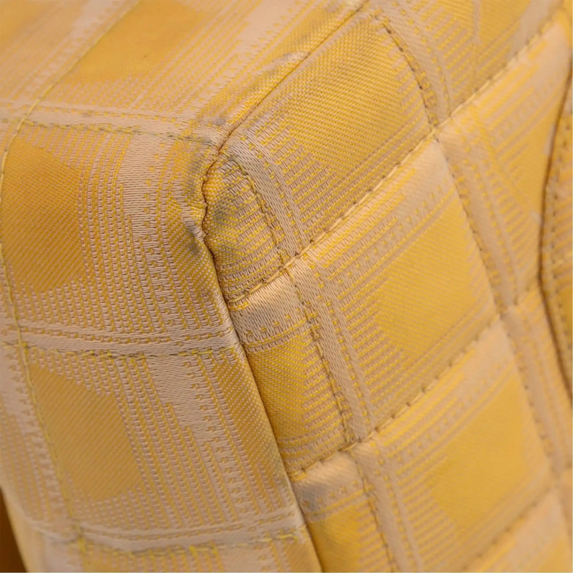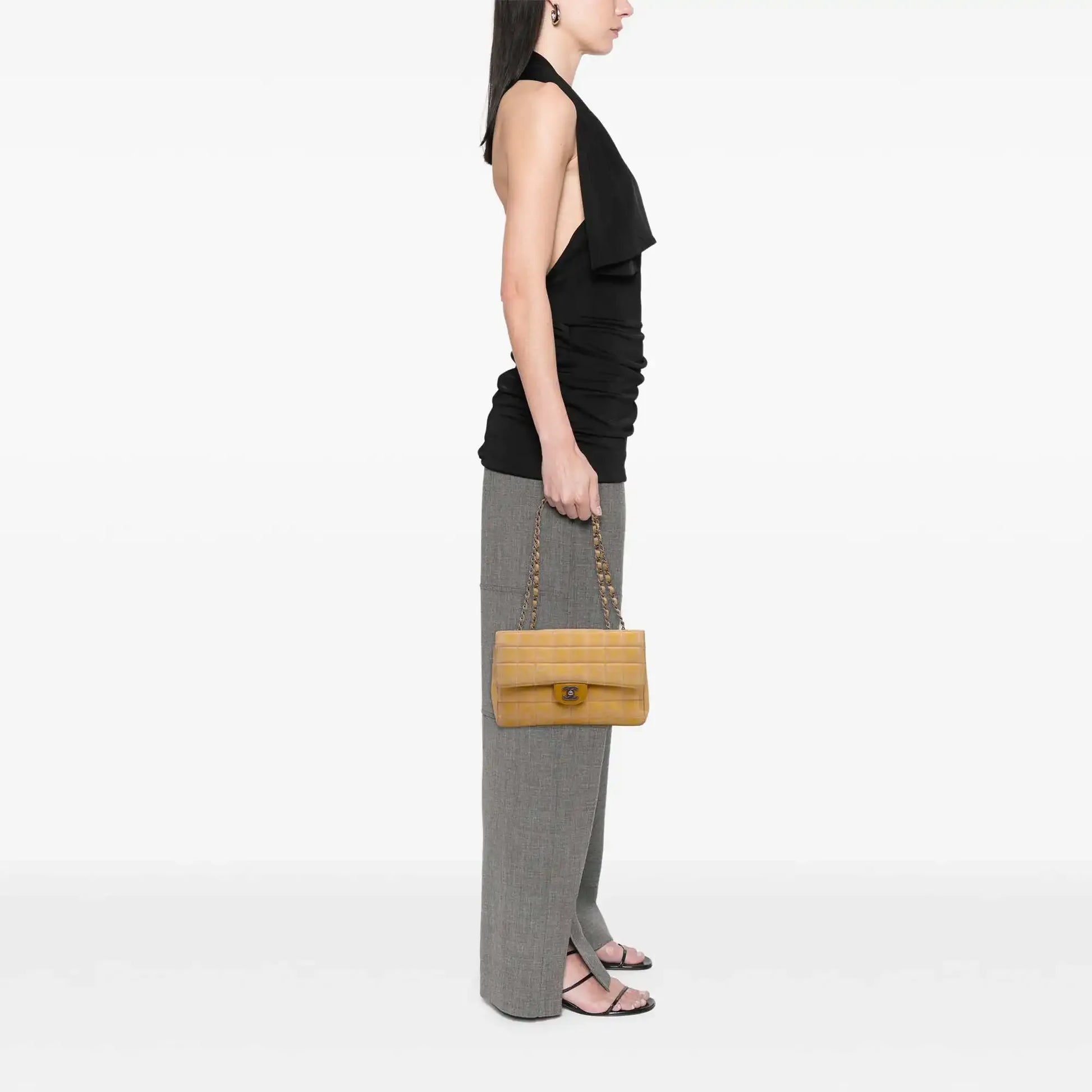 Description | This shoulder bag features a quilted nylon body, nylon-woven chain link straps, a front flap with interlocking Cs and a twist lock closure, an exterior back slip pocket, and interior slip and zip pockets. | ||||||||||||