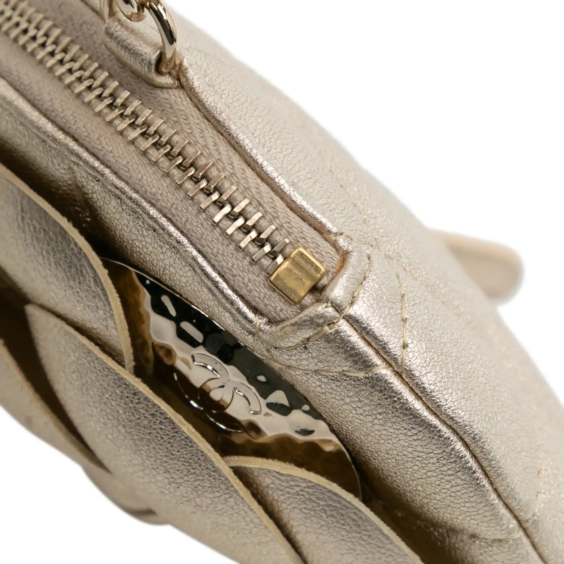 Chanel Mini CC Metallic Lambskin Camellia Bouquet Round Clutch on Chain