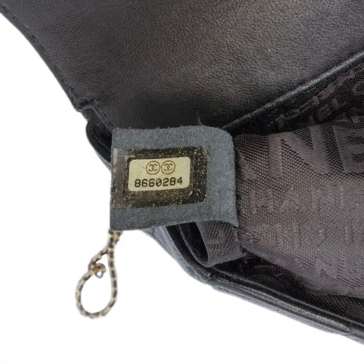 | Description | This crossbody bag features a quilted lambskin leather body, a leather woven chain link shoulder strap, a front flap with interlocking Cs and magnetic snap closure, and interior slip pockets. | ||||||||||||