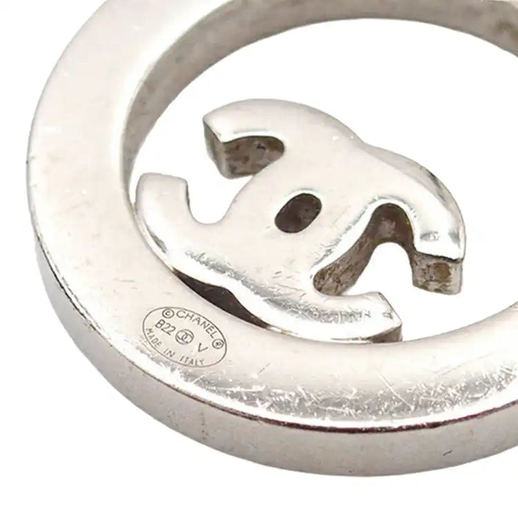 Chanel Silver Plated CC Rhinestones Round Push Back Earrings