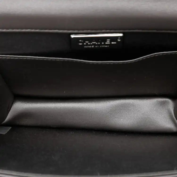 | Description | This flap features a quilted lambskin leather body with studs and eyelet details, a leather woven chain link strap, a front flap with magnetic snap closure, and an interior slip pocket. | ||||||||||||