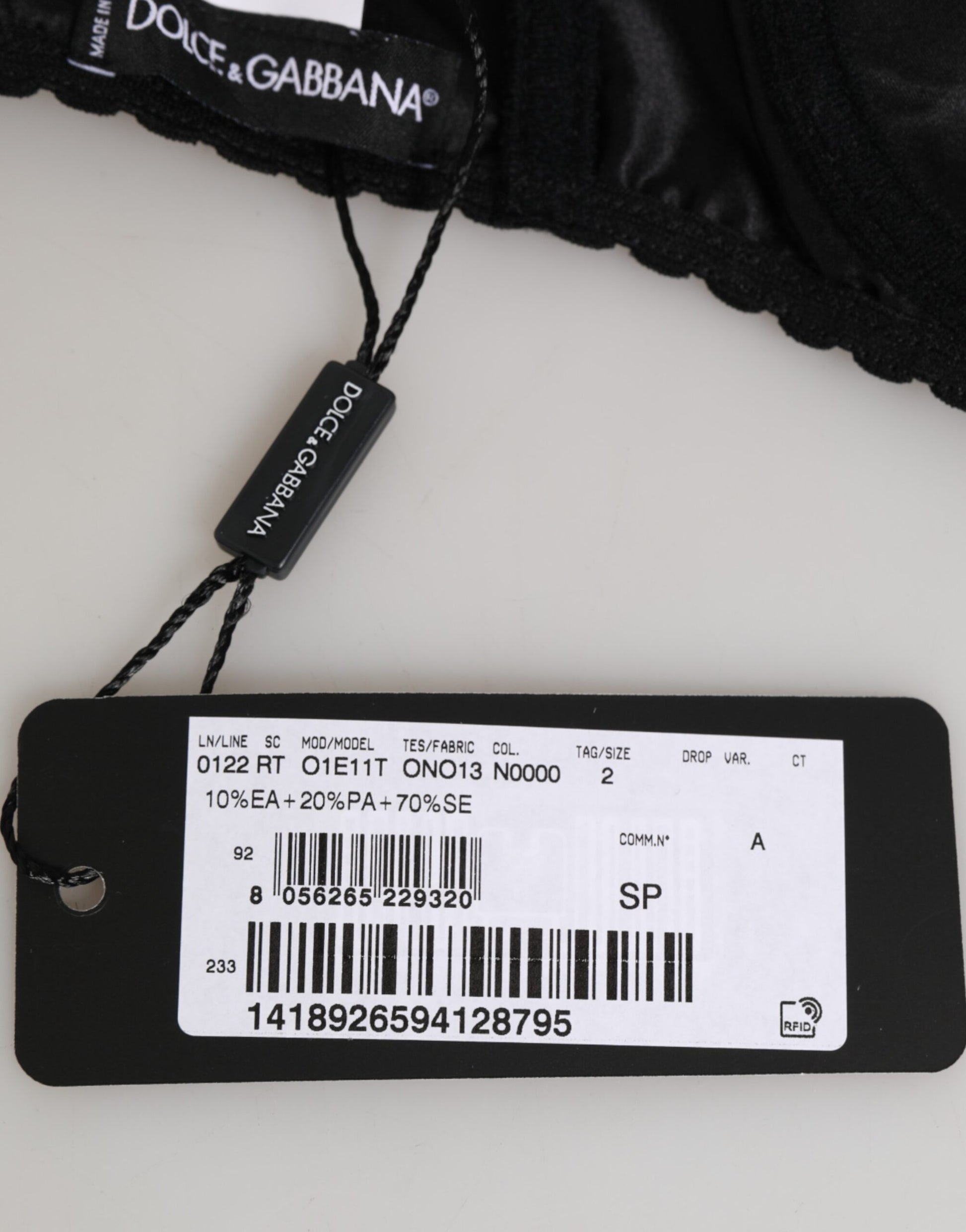 Dolce & Gabbana Black Silk Underwired Balconette Bra Underwear