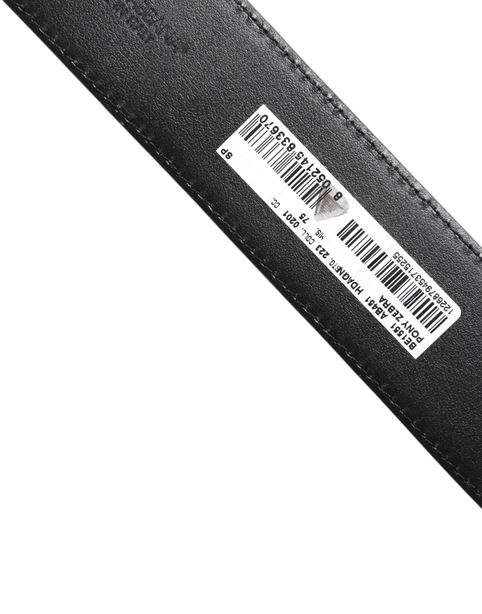 Dolce & Gabbana White Black Leather Zebra DG Crystal Buckle Belt