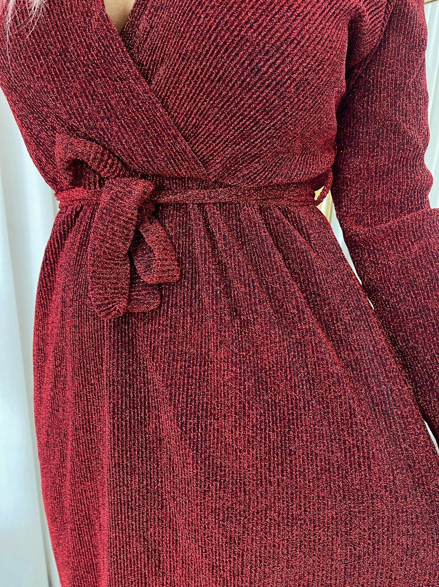 She Wears Glory™ Elegant V Neck Tie Waist Glittery Maxi Dress