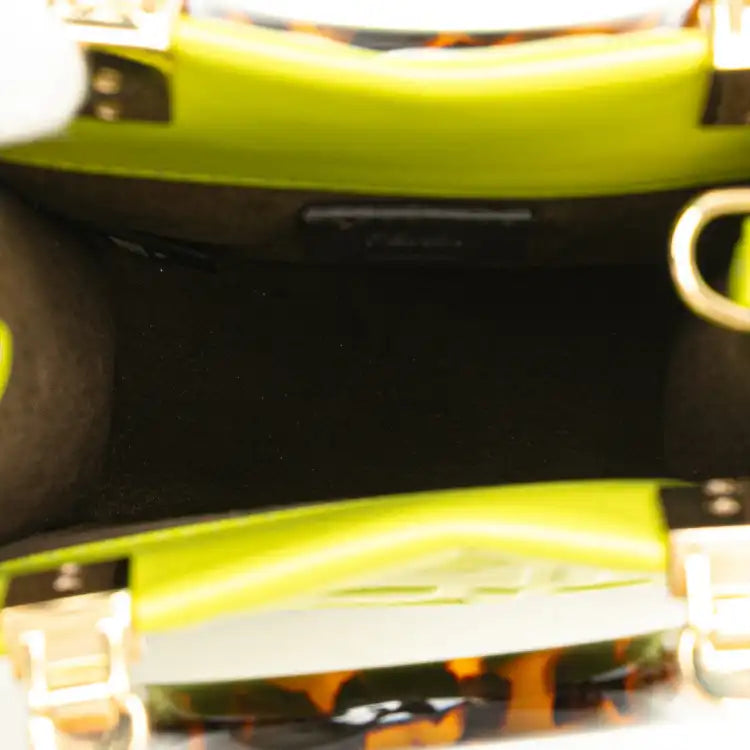 | Description | The Sunshine Shopper Tote features an embossed leather body, rolled acrylic top handles, a detachable flat leather shoulder strap, and an open top. | ||||||||||||