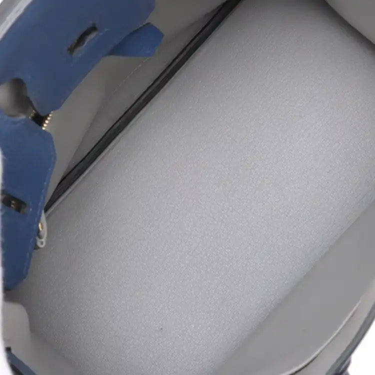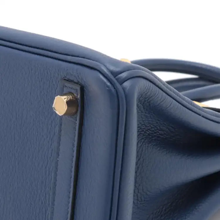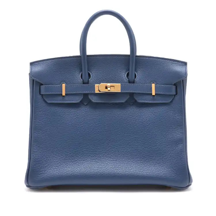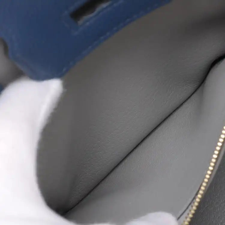 Description | The Birkin 25 features a Clemence leather body in Bleu Sapphire and Gris Mouette color, rolled leather handles, a front flap with a metal lock closure, and interior zip and slip pockets. | ||||||||||||