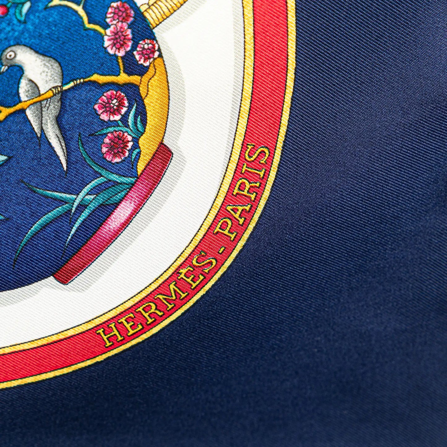The Qu Importe Le Flacon scarf features a print on 100% silk.