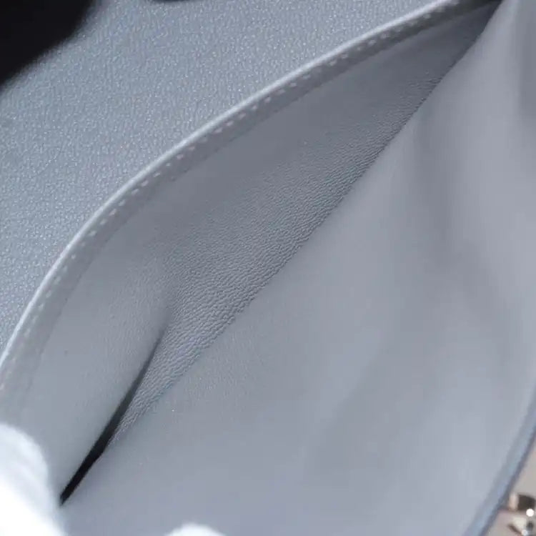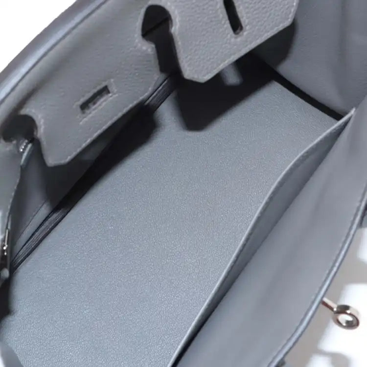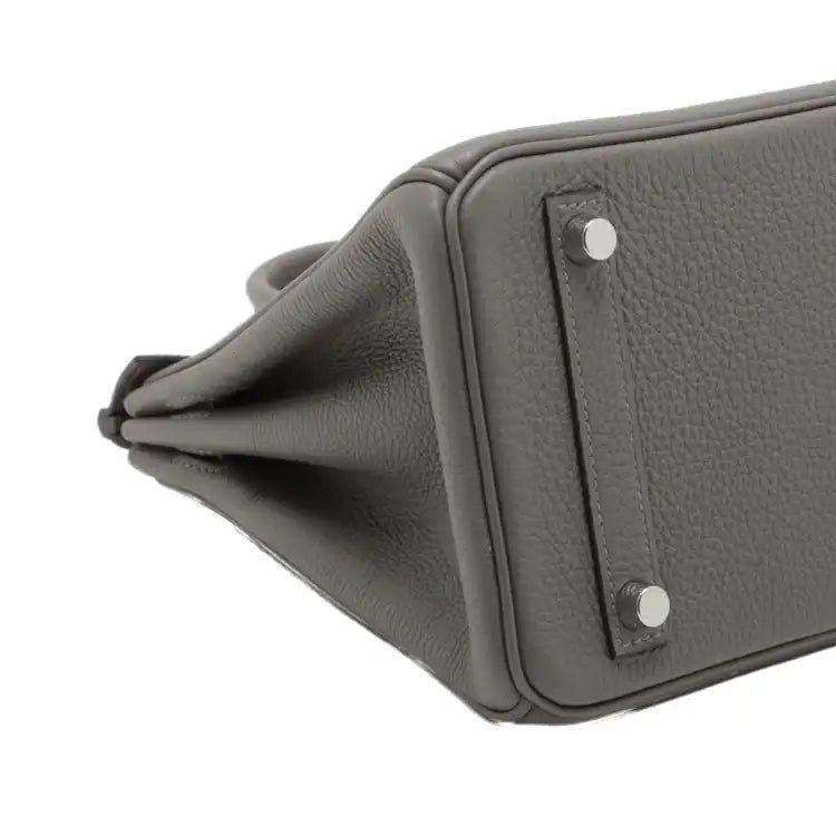 | Description | The Birkin 25 features a togo leather body in Gris Meyer color, rolled leather handles, a front flap with turn-lock closure, and interior slip and zip pockets. | ||||||||||||