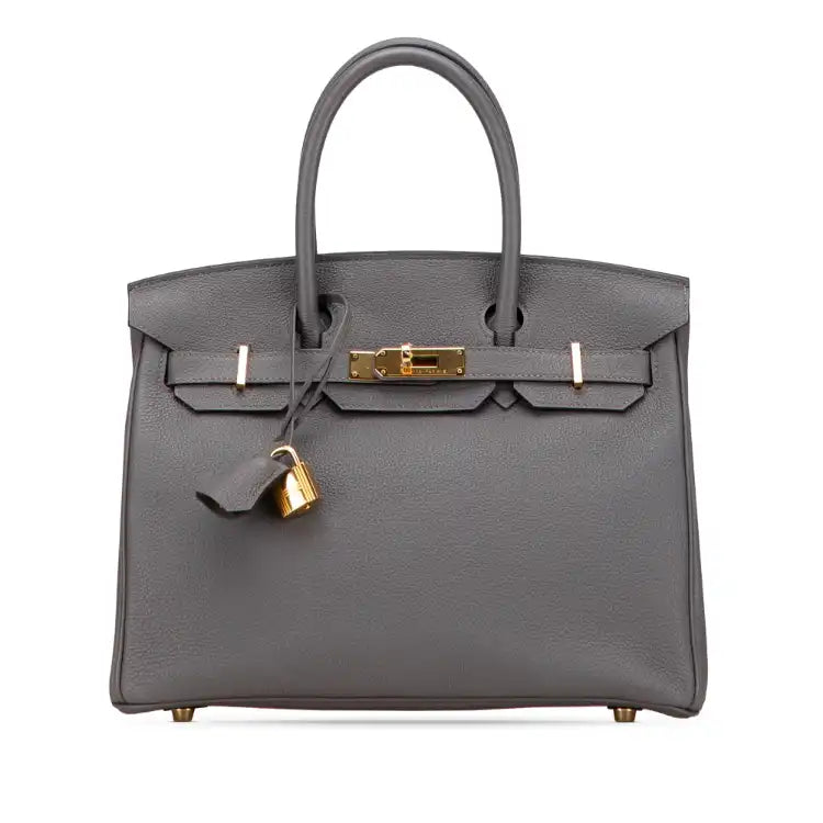Description | The Birkin 30 features a Togo leather body in Etain color, rolled leather handles, a front flap with a metal turn lock closure, and interior zip and slip pockets. | ||||||||||||