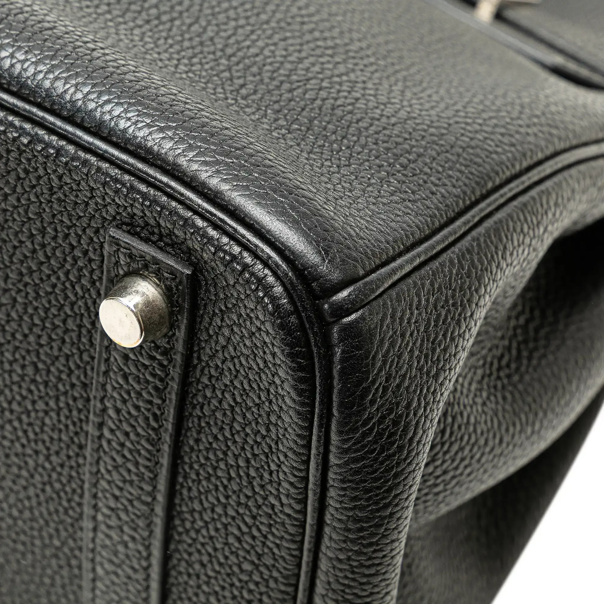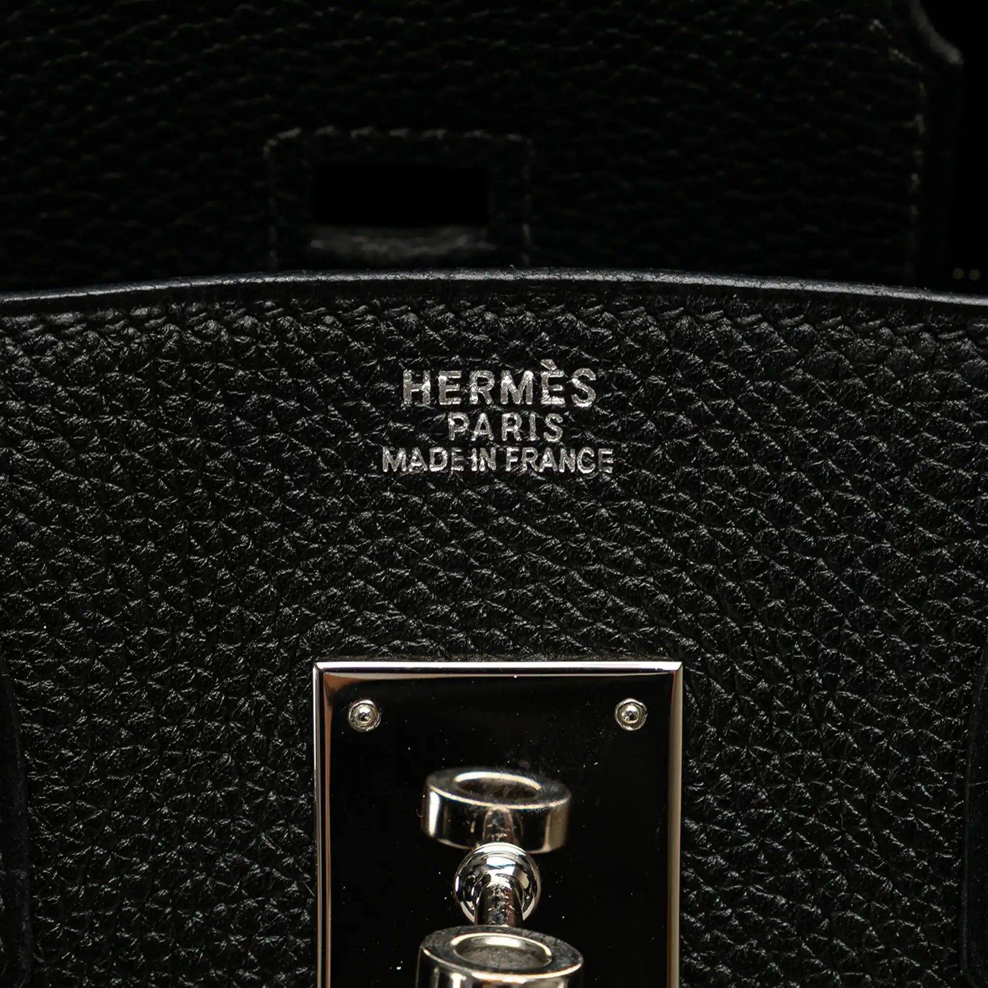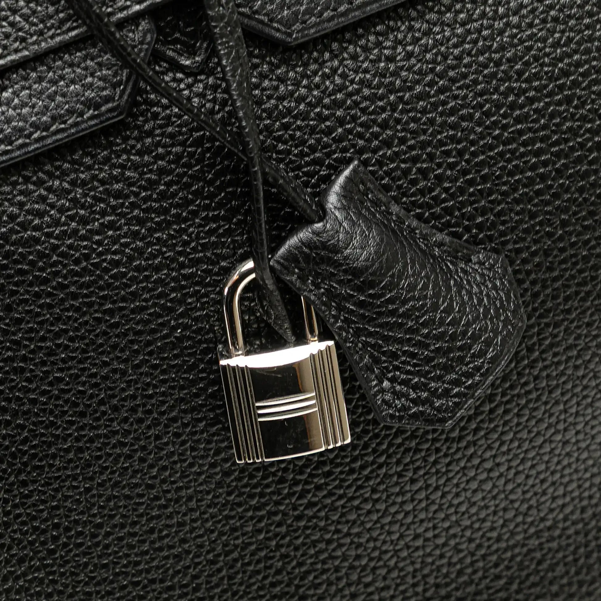 Description | This Birkin 30 features a Togo leather body in Noir color, rolled leather handles, a front flap with a metal lock closure, and interior zip and slip pockets. | ||||||||||||