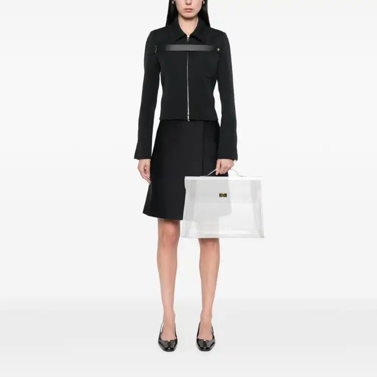 | Description | The Vinyl Kelly handbag features a see-through vinyl body, a flat top handle, and a front flap with a turn lock closure. | ||||||||||||