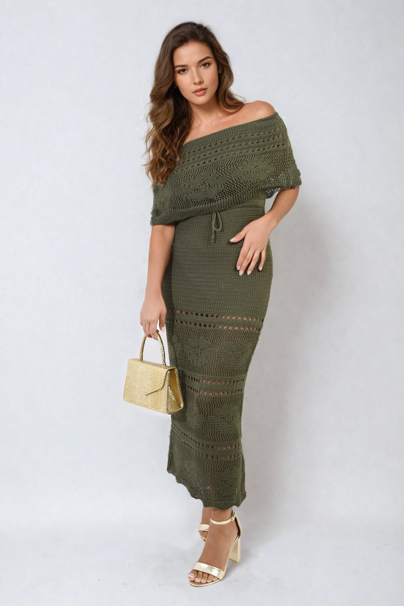She Wears Glory™ Knit Crochet Off Shoulder Maxi Dress