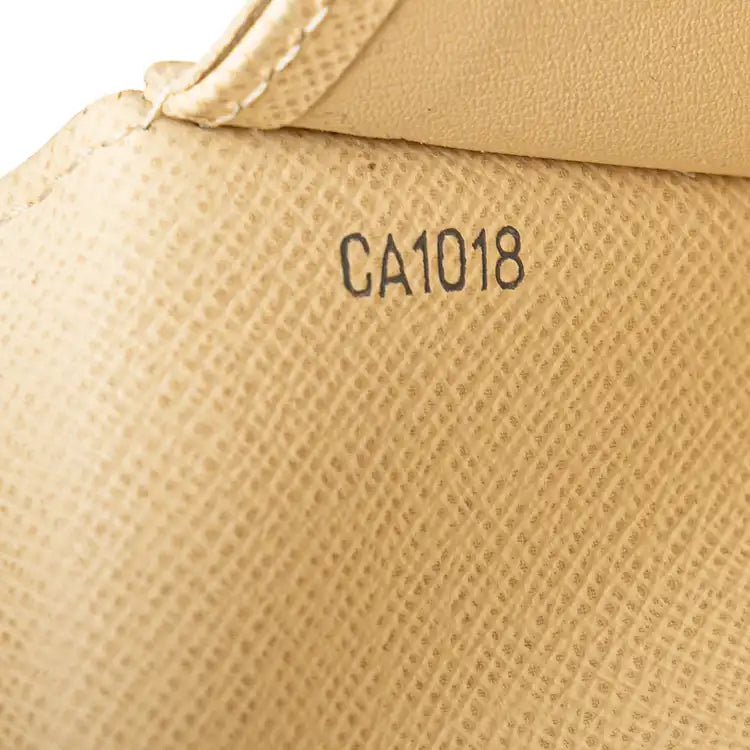 Description | The Sarah Wallet features a damier canvas body, a front flap with button clasp closure, and interior zip and slip compartments | ||||||||||||