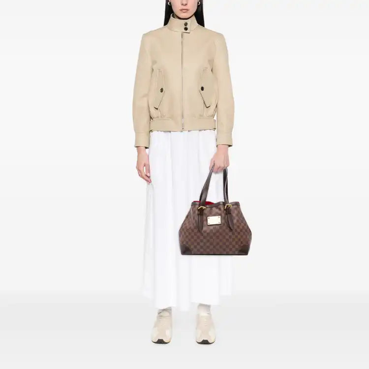 Description | The Hampstead GM features a damier canvas body with leather trim, flat leather shoulder straps, an open top with lobster clasp closure, and interior zip and slip pockets. | ||||||||||||