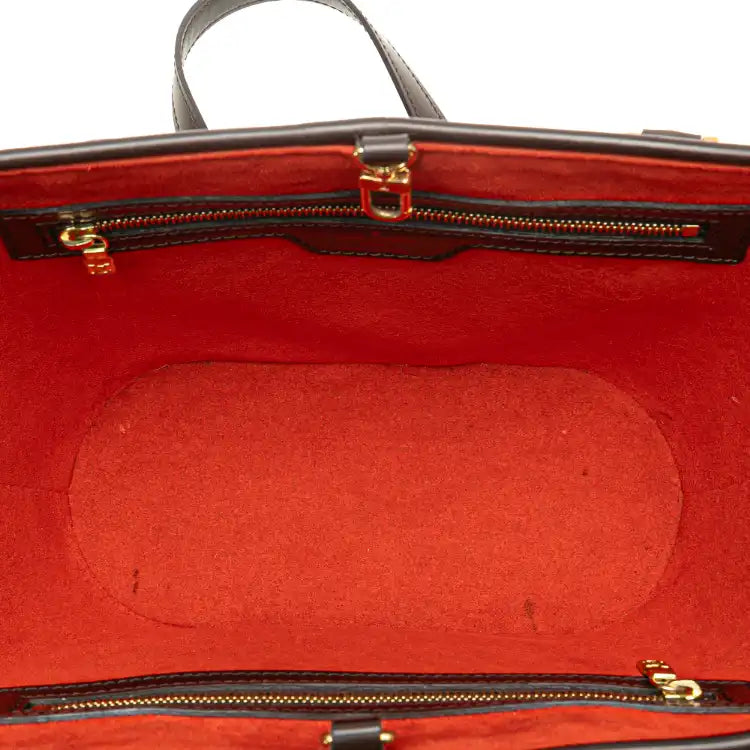 Description | The Manosque PM features a damier ebene canvas body with leather trim, flat leather straps, an open top with a lobster clasp closure, and an exterior front flap pocket. | ||||||||||||