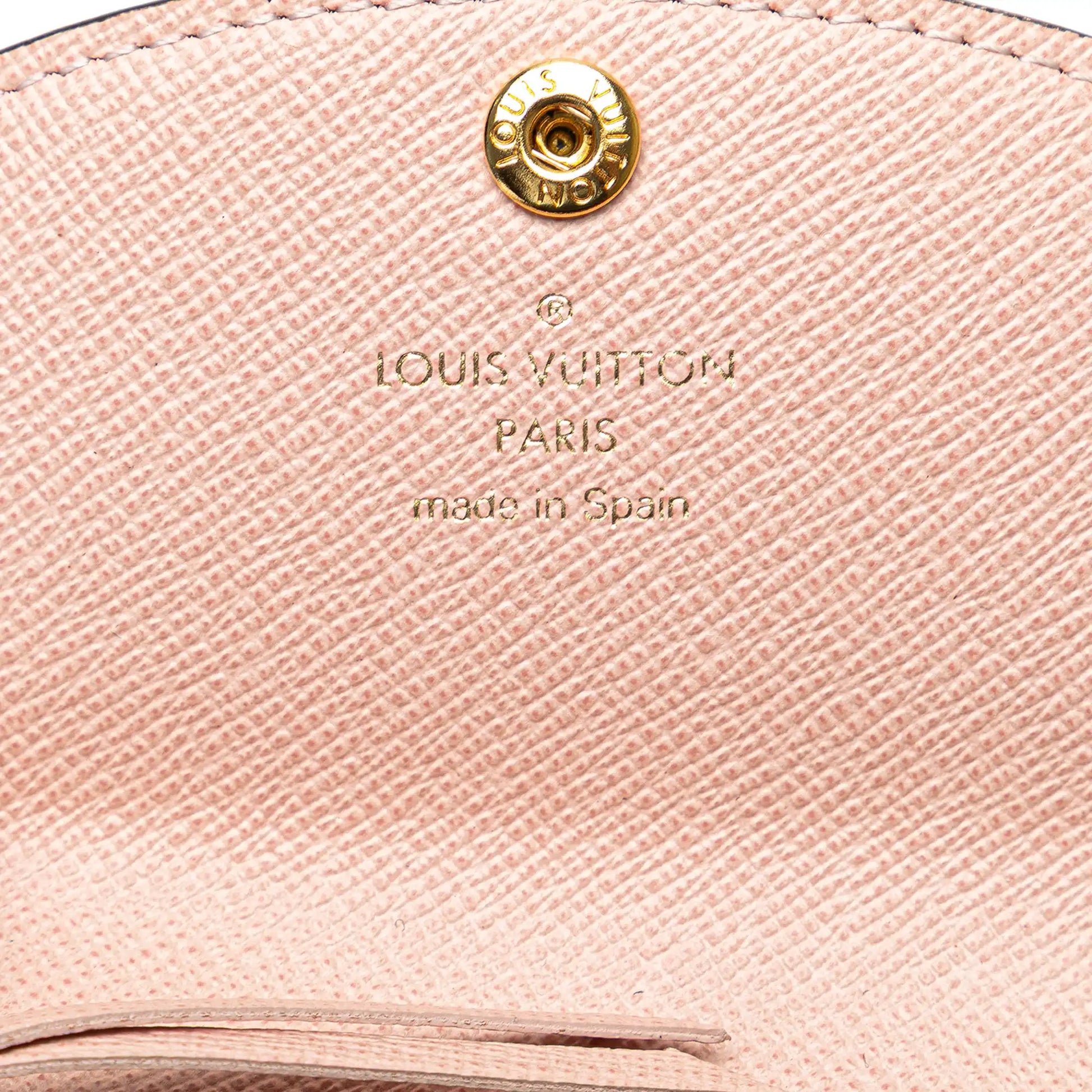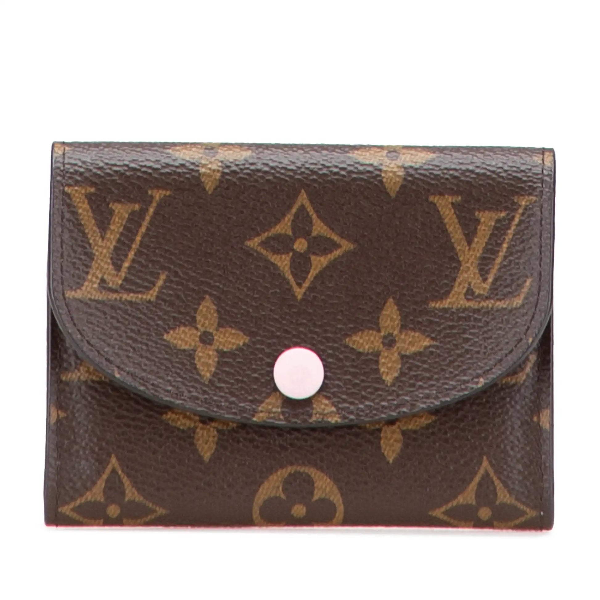 | Description | The Rosalie coin purse features a monogram canvas body, a front flap with snap button closure, and interior zip and slip pockets. |