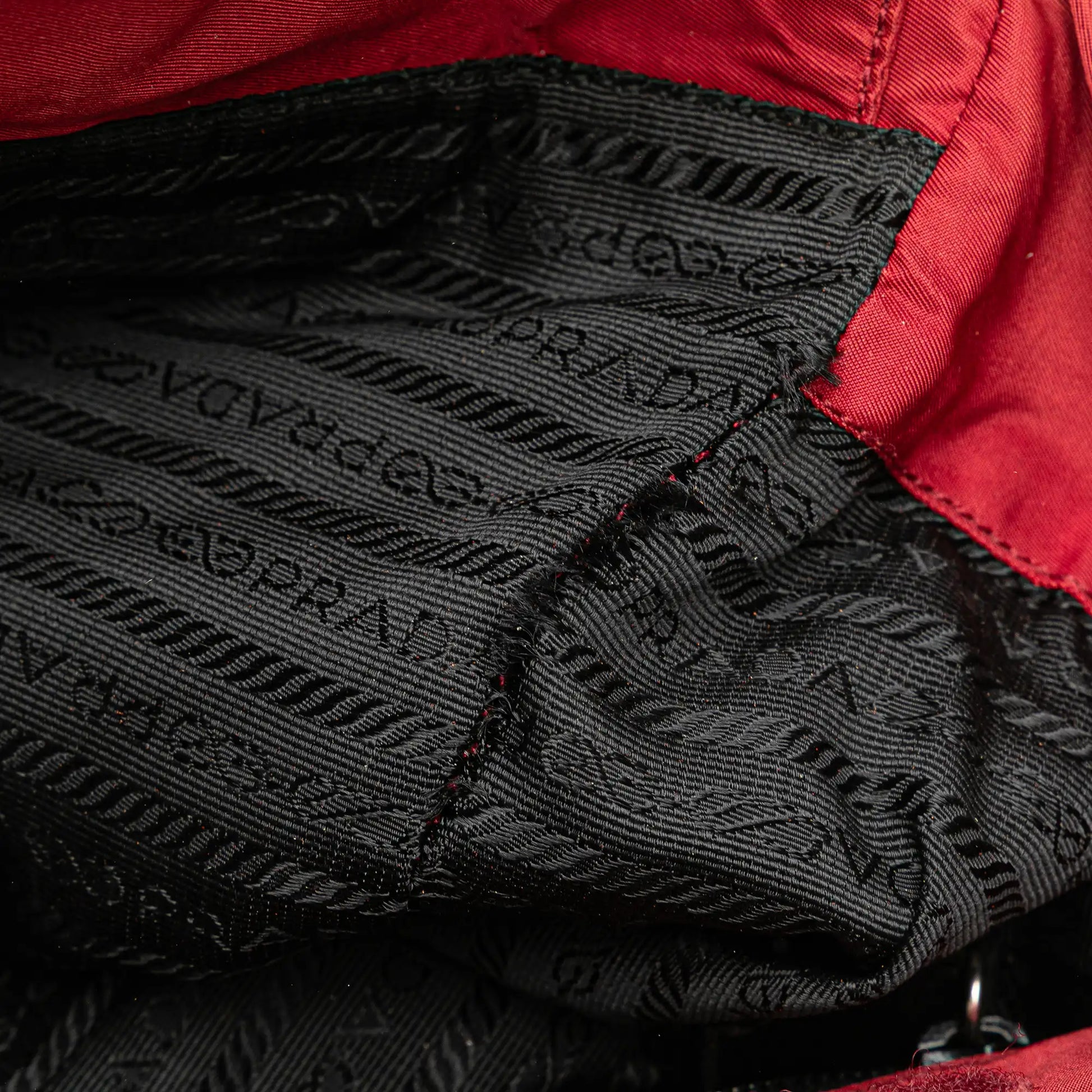 This tote bag features a nylon body, rolled acrylic handles, a fold over flap with touch fastener closure, and an interior zip pocket.