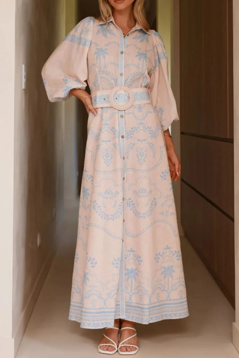 She Wears Glory™ Printed Balloon Sleeve Maxi Shirt Dress