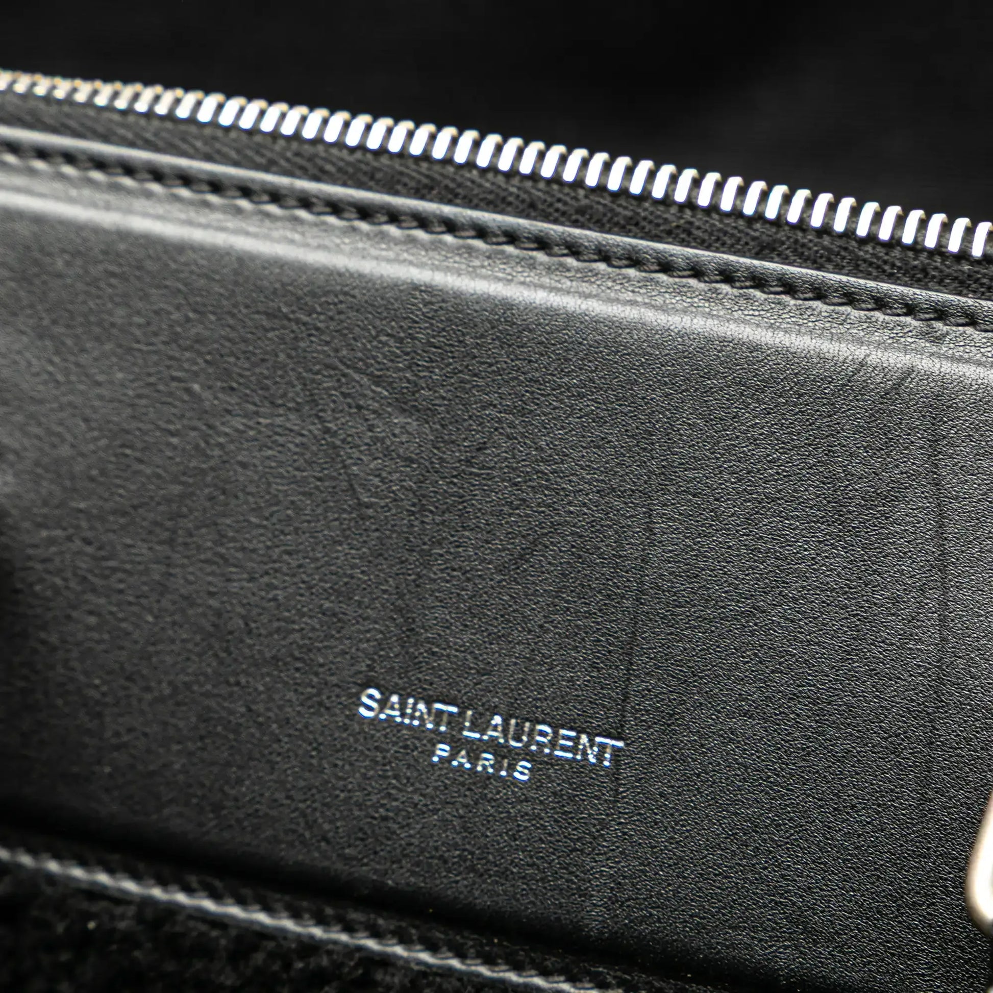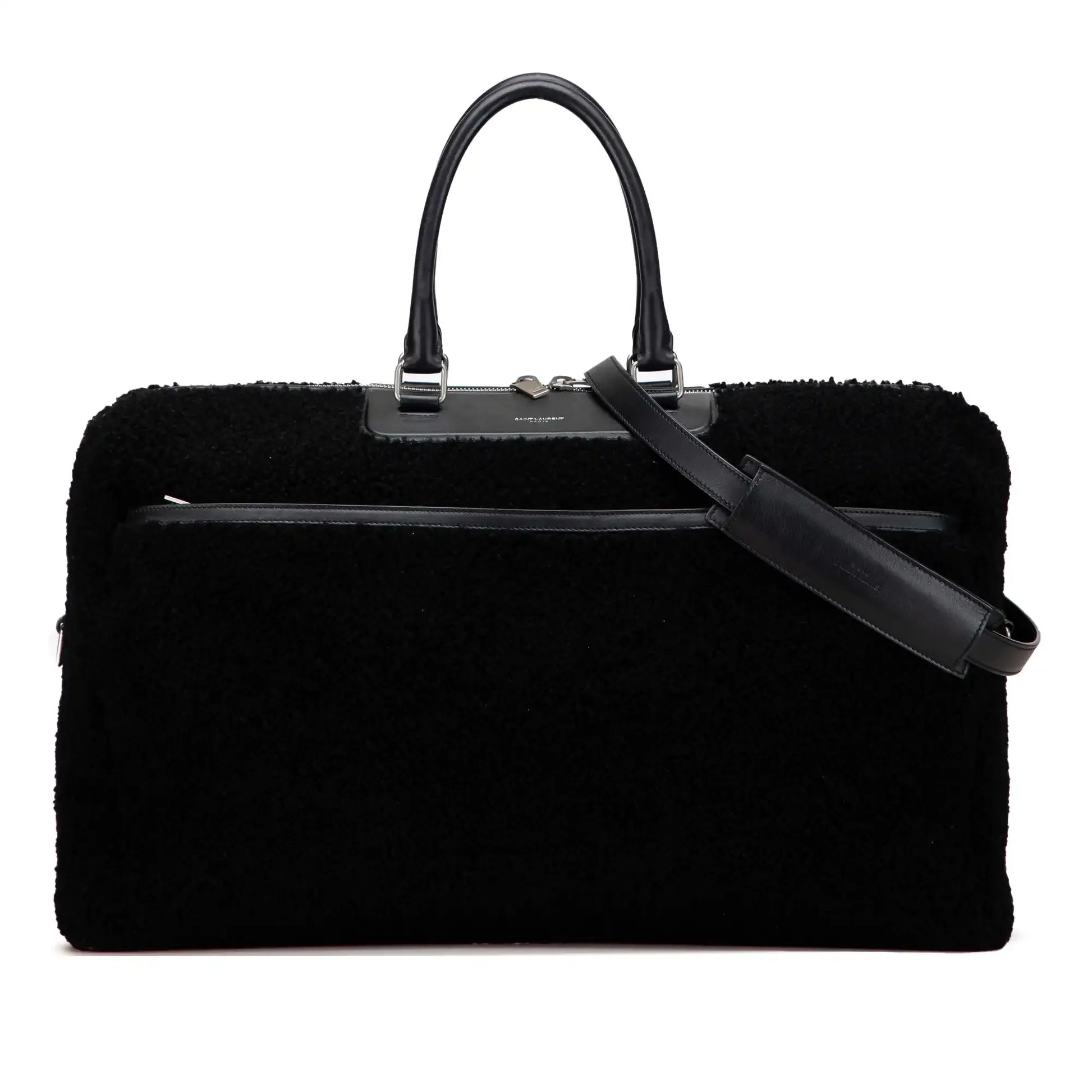 Description | This travel bag features a shearling body with leather trim, rolled leather handles, a detachable flat strap, dual top zip closure, an exterior zip pocket, and an interior zip pocket. | ||||||||||||