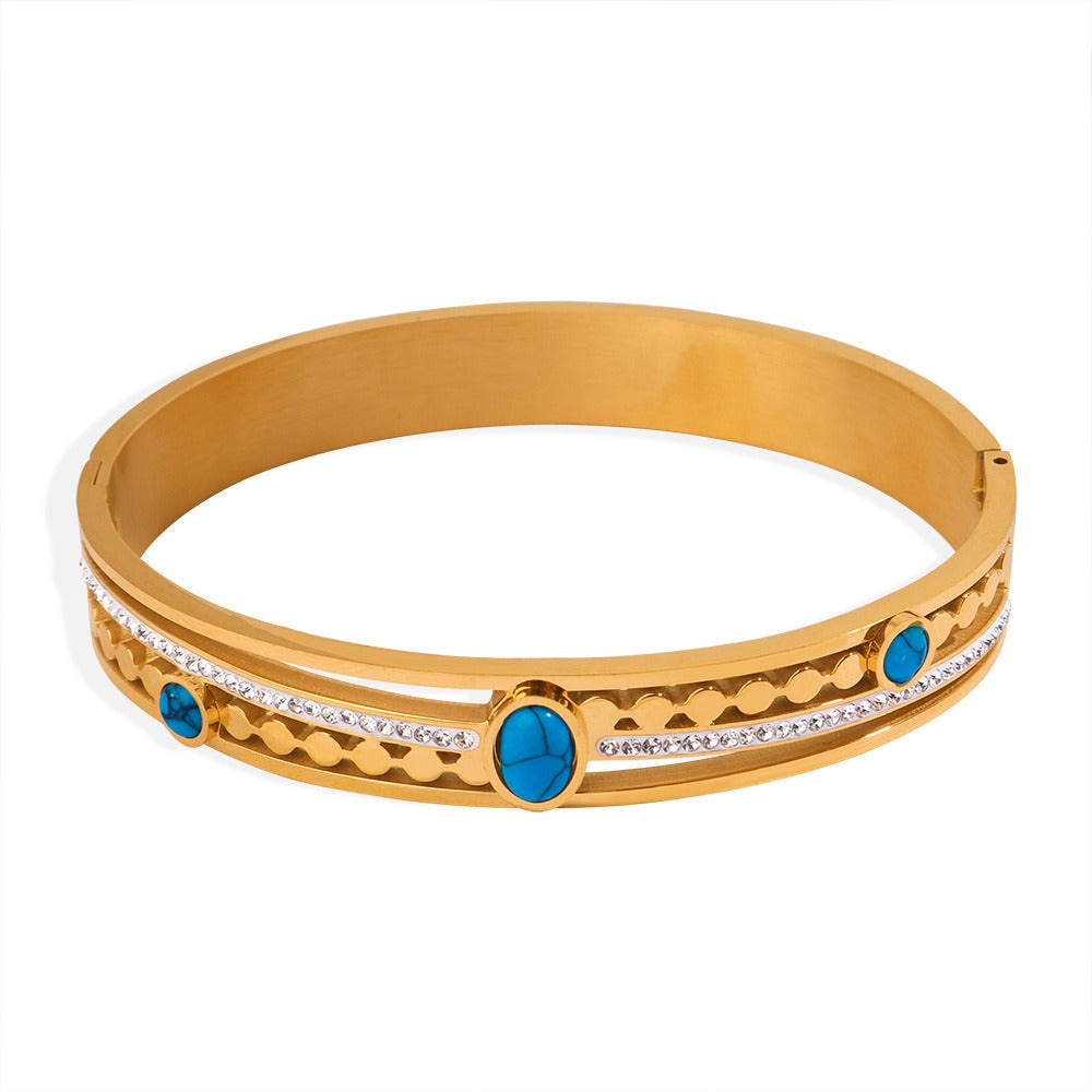 Trendy and fashionable 18k gold inlaid turquoise and zircon hollow design versatile bracelet